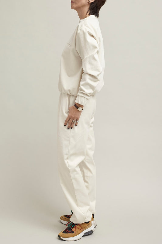 Two Piece Set with Sweat Pants and Sweat Blouse | White Pants with Elastic Waist and Matching Top