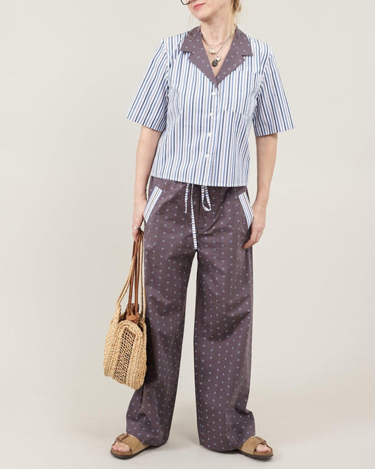 Lightweight Summer Set | Striped Shirt & Polka Dot Wide Leg Pants | Relaxed PJ Style Co-ords