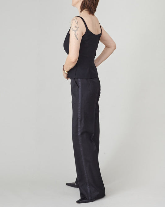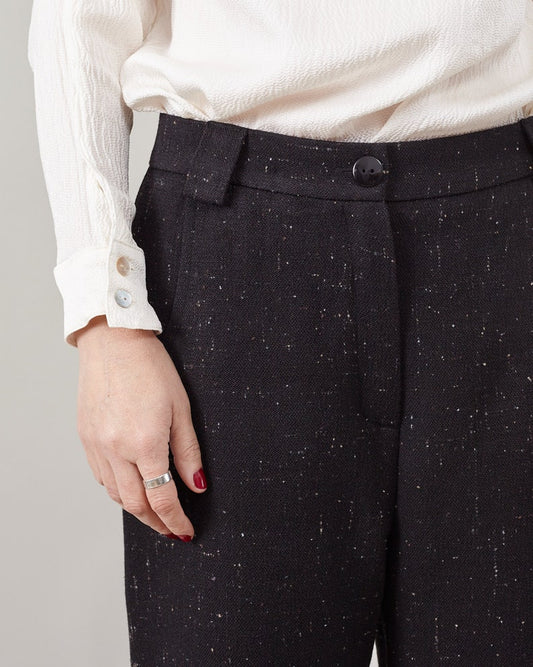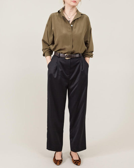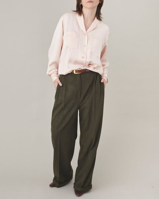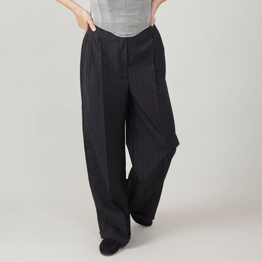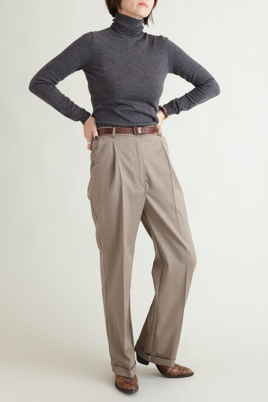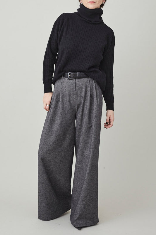Wide-Leg Wool Pants for Women – High-Waist Pleated Trousers