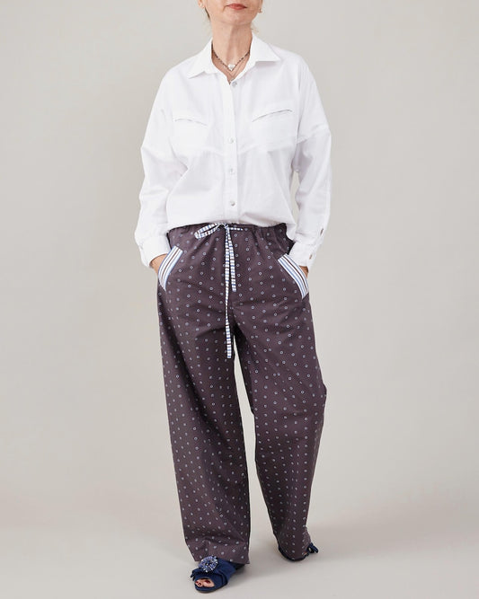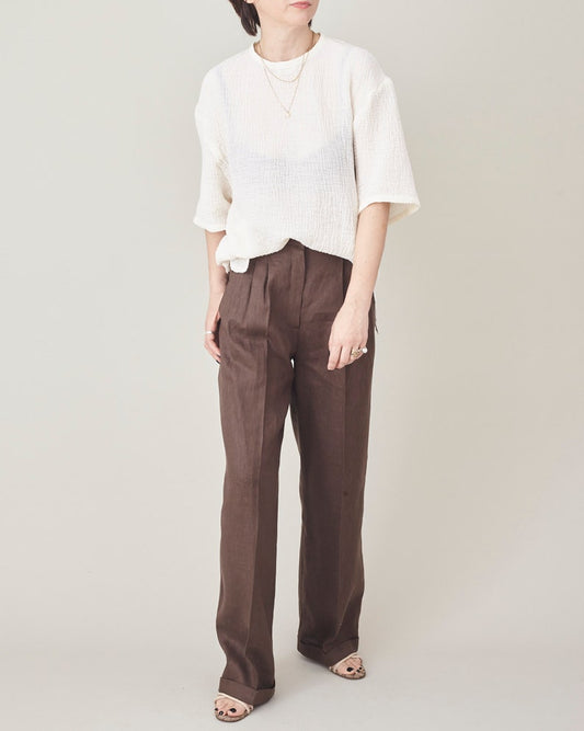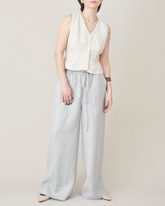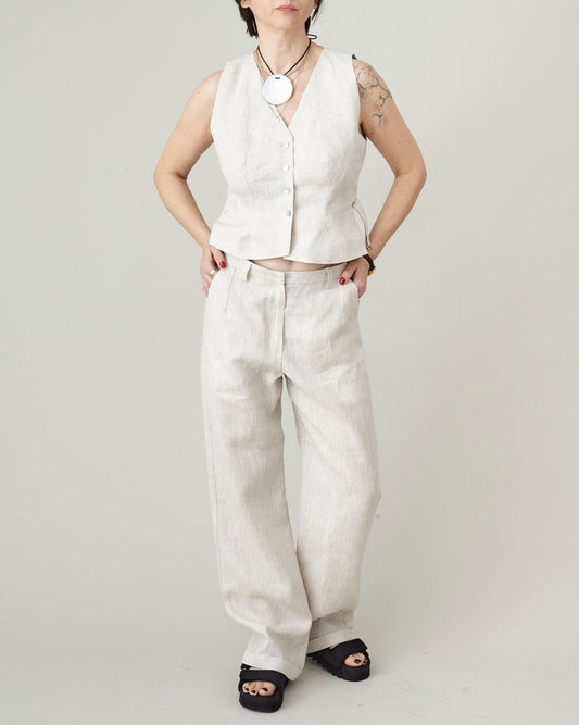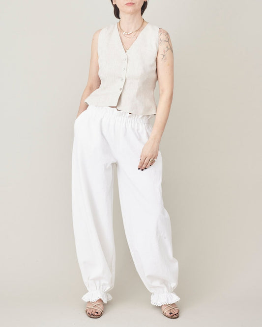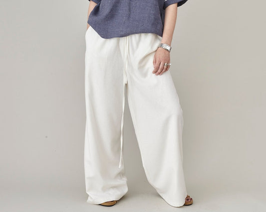 White Linen Pants for Women | Wide Leg Trousers with Skirt Overlay