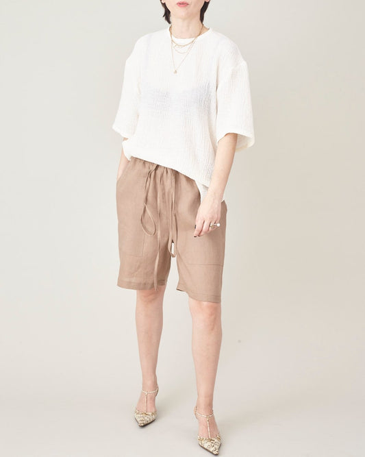 Linen Bermuda Shorts, Draw String, Elastic Waist Baggy Beach Short Pants